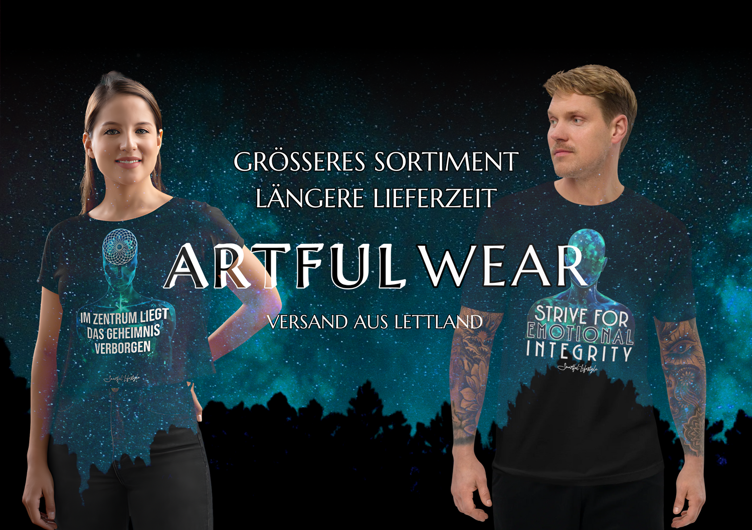 ARTFUL WEAR umfasst eine sehr große Anzahl eigenständiger Designs, verteilt auf viele verschiedene Produkte. Der Bereich ist breit angelegt, experimentierfreudig und stilistisch vielfältig. Du findest hier eine große Designlandschaft mit vielen Varianten und Ausdrucksformen. Die Lieferzeit liegt im Durchschnitt etwas höher.