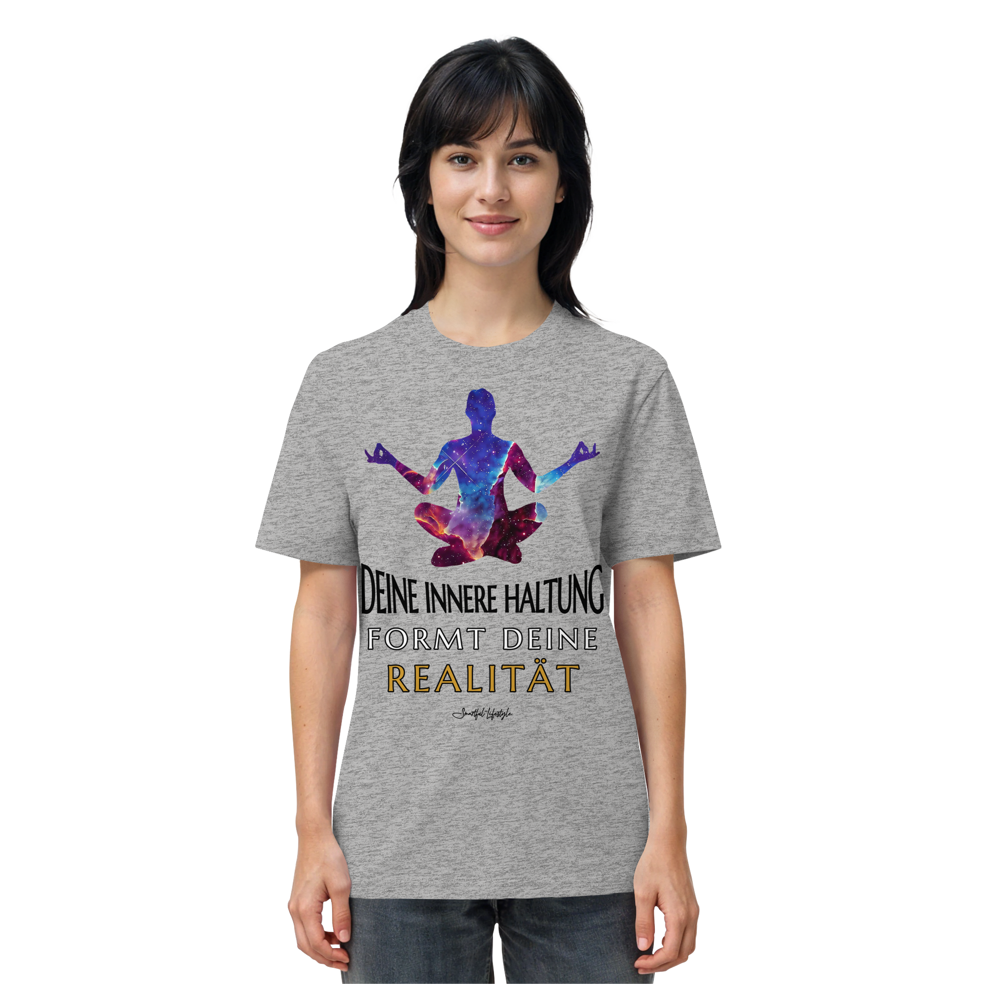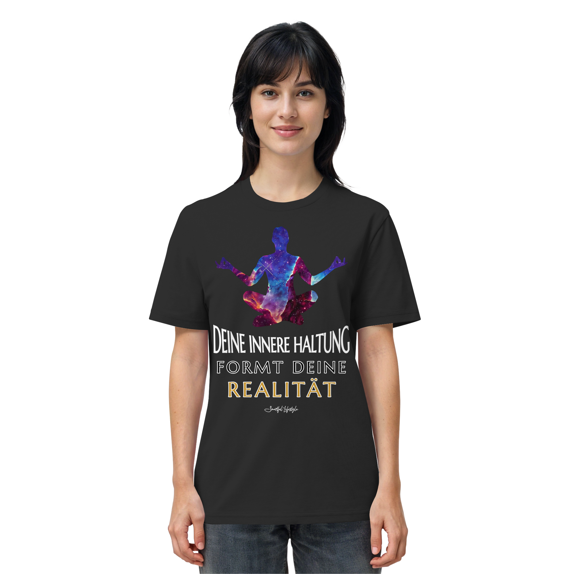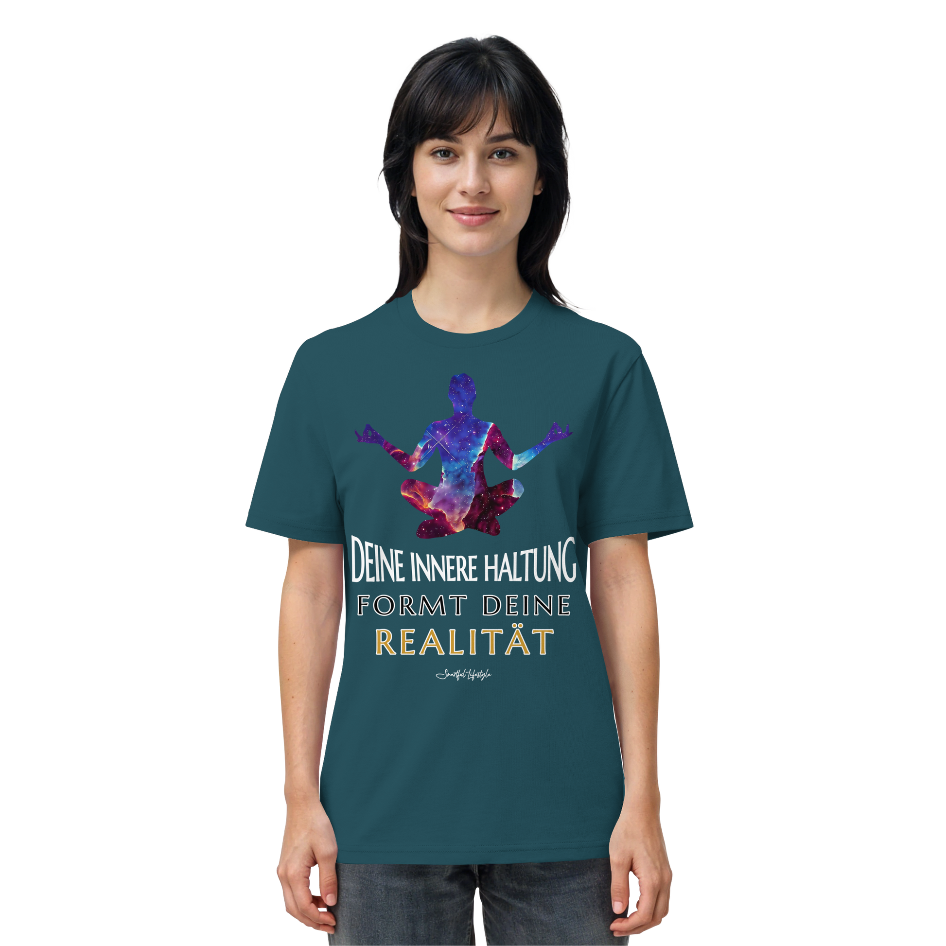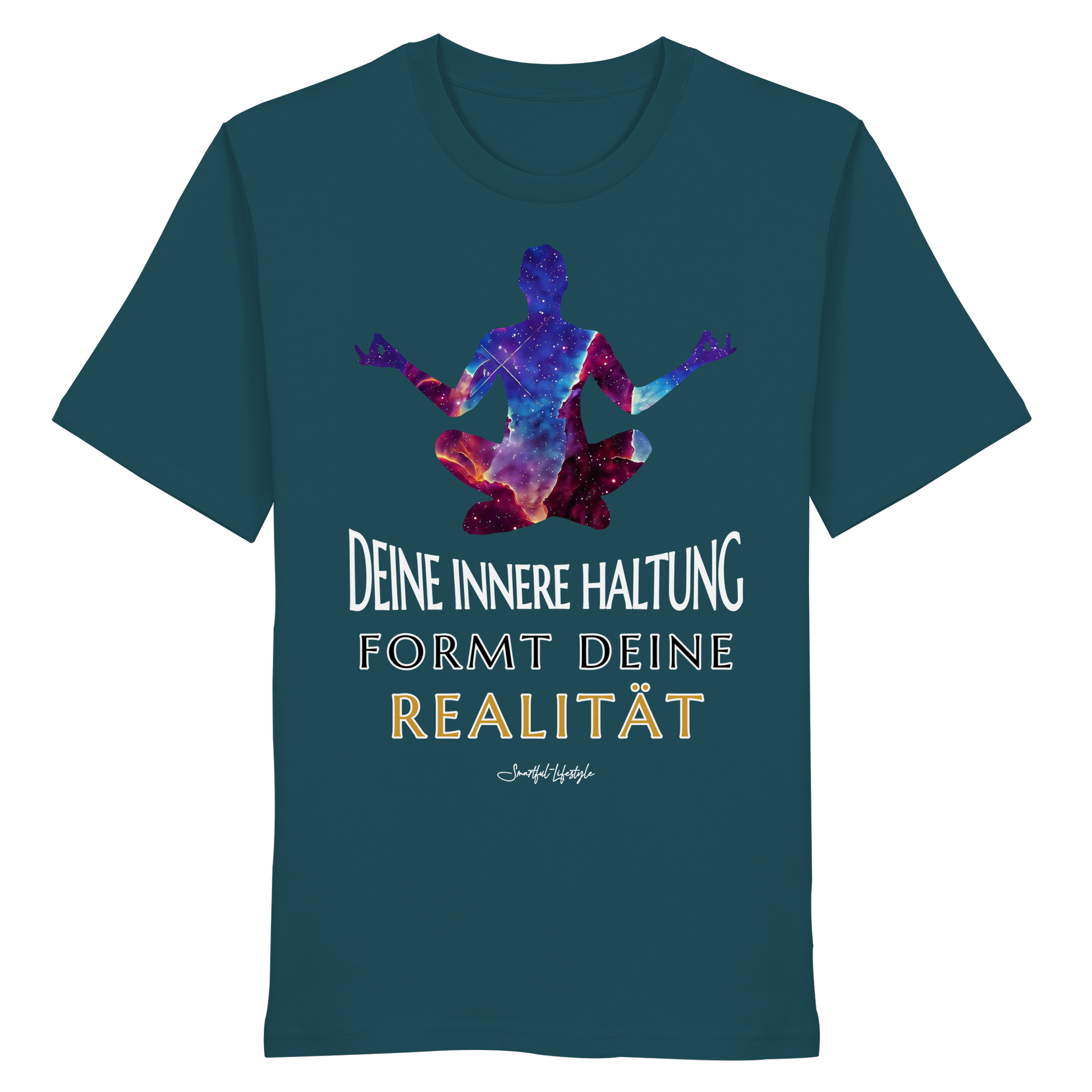 Die Worte „Deine innere Haltung formt deine Realität“ erscheinen nicht als Leitspruch, sondern als Erkenntnis. Dieses Design trägt einen stillen Kern in sich: Wer bewusst fühlt, verändert den Blick – und mit ihm die Welt.