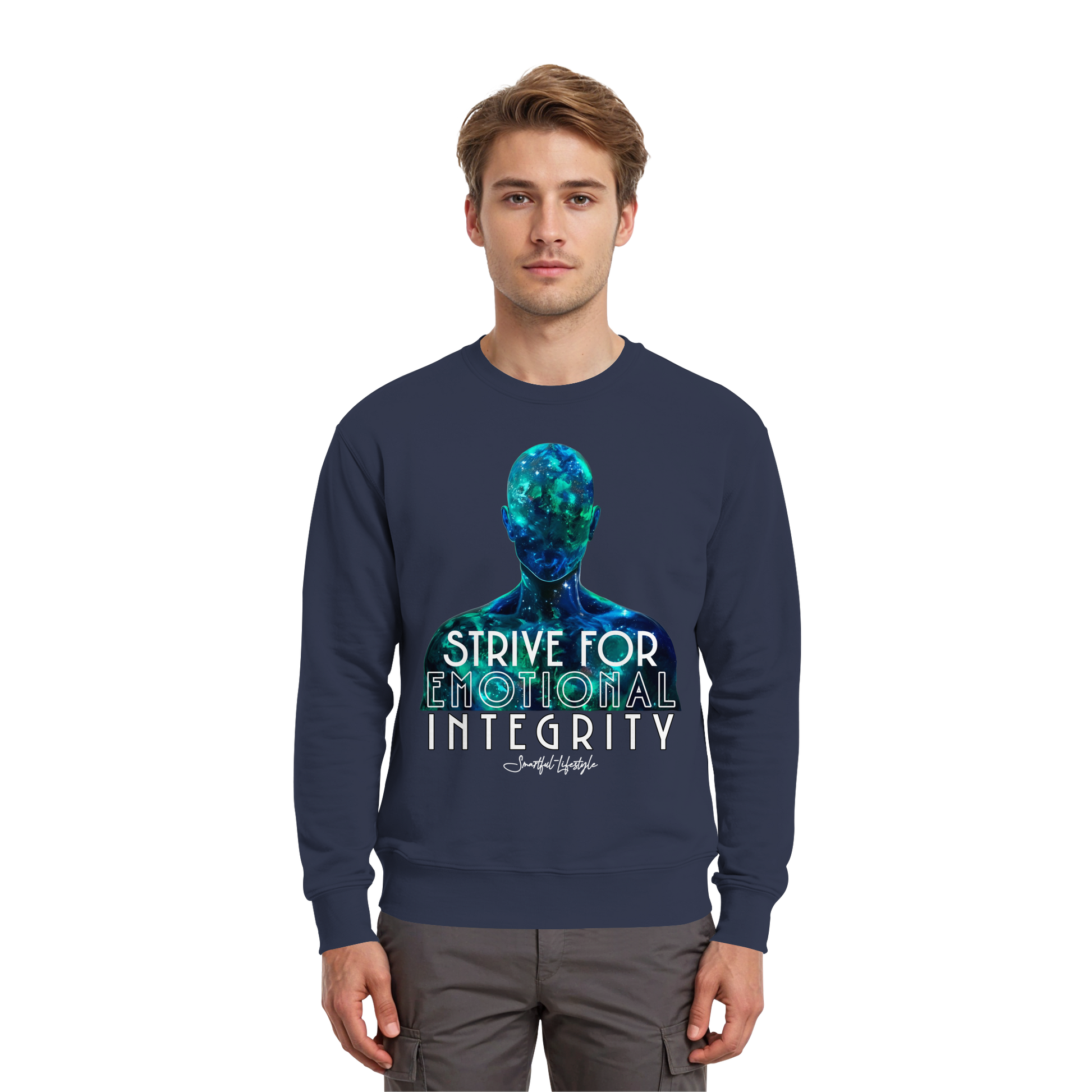 „Strive for Emotional“ steht nicht als Befehl, sondern als Zustand: Wer emotional strebt, bleibt durchlässig. Das Design zeigt keine Emotion – sondern die Fähigkeit, sie zu tragen.